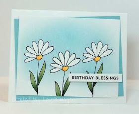 I masked off the daisy's and lightly brushed on some tumbled glass distress oxide ink to create a soft look. Sentiment is also from MFT, but it's from their bitty birthday wishes set.